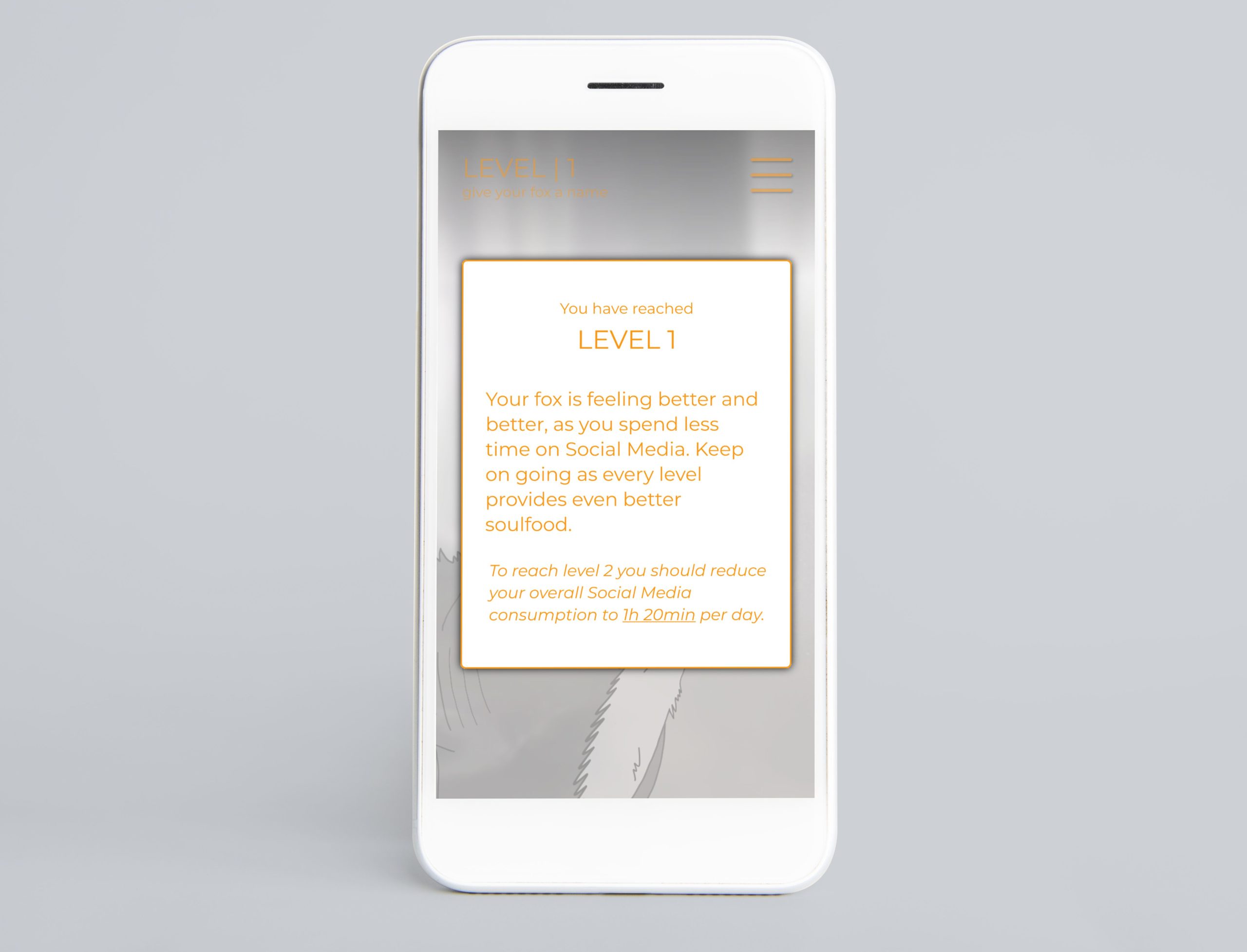 Die App Defox soll dabei helfen den Social Media Konsum zu reduzieren. Anhand der Bildschirmlaufzeiten der Social Media Plattformen wird ein Fuchs erstellt. Dieser Fuchs spiegelt den Social Media Konsum des Benutzers wider. Je weniger Zeit man auf Facebook und Co verbringt, desto besser wird es dem Fuchs und seiner Umwelt gehen. Falls der User eine Ablenkung von Social Media braucht, kann er die Welt des Fuchses erkunden und nach sogenanntem „Soulfood“ (Meditationen, Atemübungen, Podcasts) suchen.