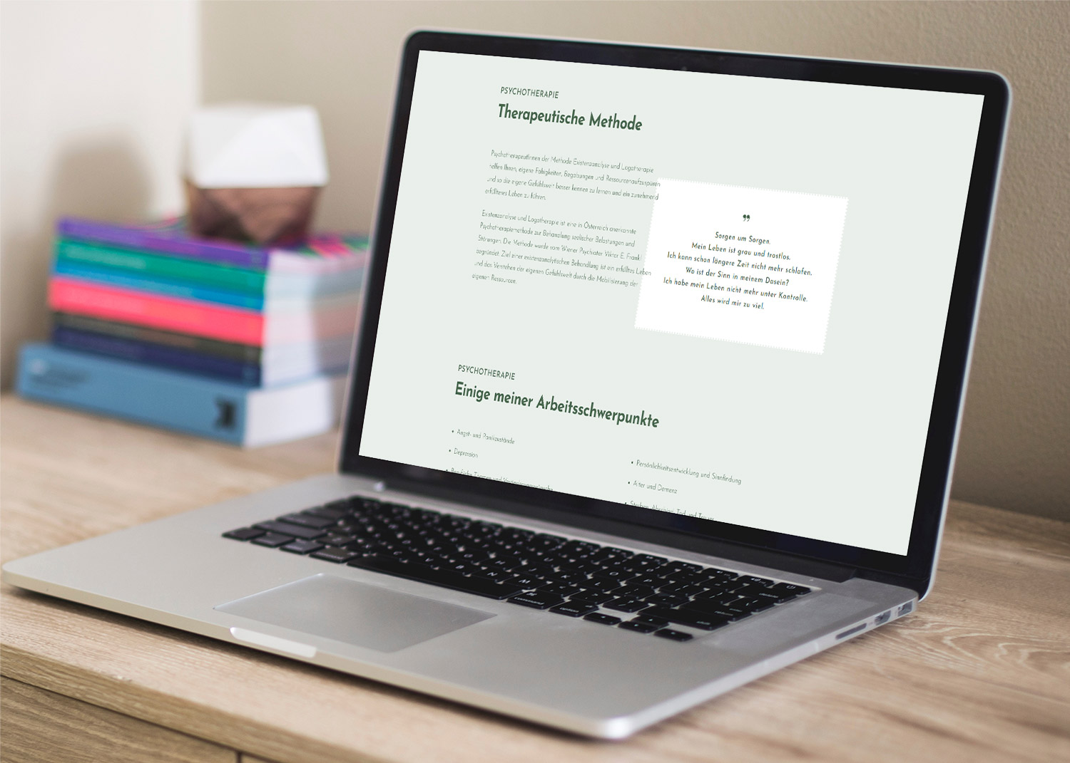 Für eine Psychotherapeutin aus dem Bezirk Melk entstand eine dynamische und interaktive Website. Die natürlichen Farben und der klare Aufbau leiten die Benutzer durch den Onepager. Besondere Aufmerksamkeit verdienen die Lottie-Animationen, die zentrale Themen der Therapie symbolisieren und das Benutzererlebnis deutlich interaktiver gestalten, indem sie auf das Scrollverhalten der Nutzer reagieren. Diese Animationen sorgen nicht nur für visuelles Interesse, sondern auch für eine tiefere Verbindung zu den Inhalten der Seite. So entsteht eine harmonische und ansprechende Online-Präsenz, die das professionelle und einfühlsame Angebot der Psychotherapeutin optimal widerspiegelt.